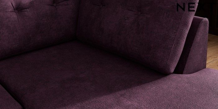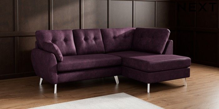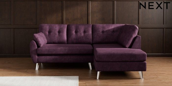 7.3.1 Buy Wilson Buttoned Back Medium Corner Chaise - Right Hand Plush Chenille Dark Plum Purple Metal Tapered - Chrome from the Next UK online shop Click here to use our accessible website