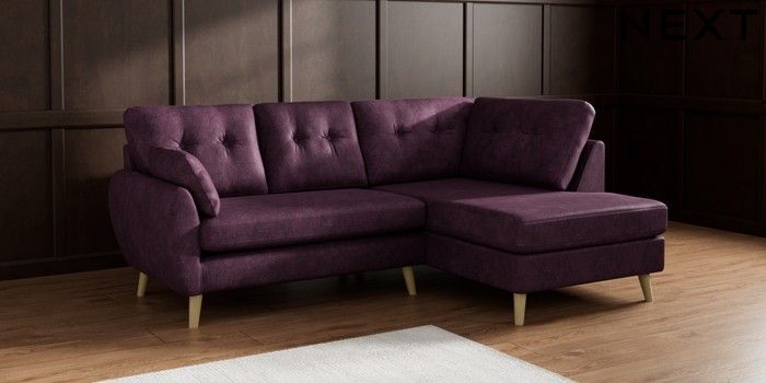 7.2.10 Buy Wilson Buttoned Back Medium Corner Chaise - Right Hand Plush Chenille Dark Plum Purple Retro Tapered - Light from the Next UK online shop Click here to use our accessible website