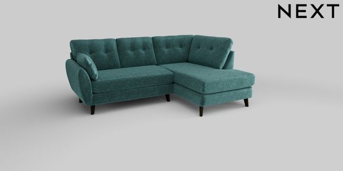 6.12.1 Buy Wilson Buttoned Back Medium Corner Chaise - Right Hand Plush Chenille Dark Teal Green Retro Tapered - Dark from the Next UK online shop Click here to use our accessible website