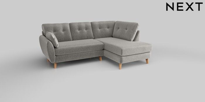 6.12.1 Buy Wilson Buttoned Back Medium Corner Chaise - Right Hand Plush Chenille Light Grey Retro Tapered - Light from the Next UK online shop Click here to use our accessible website