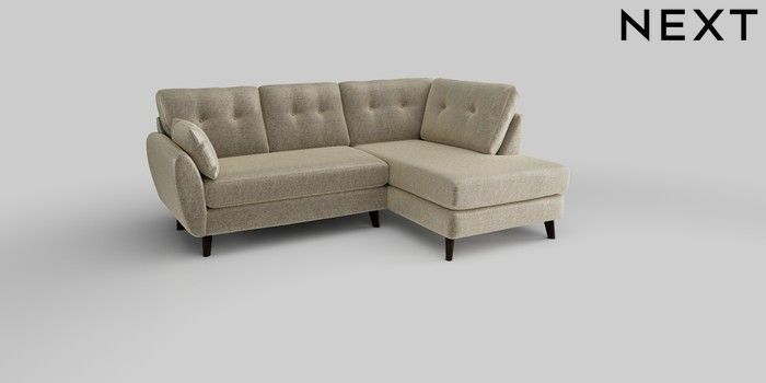 6.12.1 Buy Wilson Buttoned Back Medium Corner Chaise - Right Hand Plush Chenille Light Natural Retro Tapered - Dark from the Next UK online shop Click here to use our accessible website