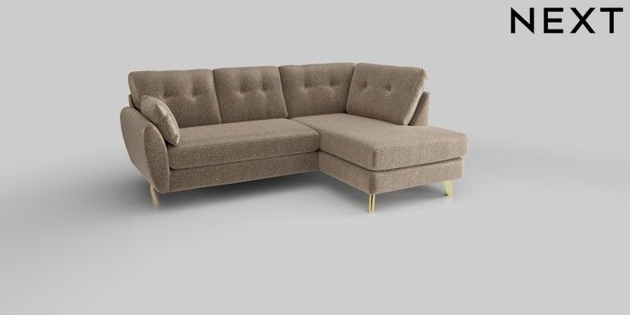 6.12.1 Buy Wilson Buttoned Back Medium Corner Chaise - Right Hand Plush Chenille Mid Natural Metal Tapered - Gold from the Next UK online shop Click here to use our accessible website