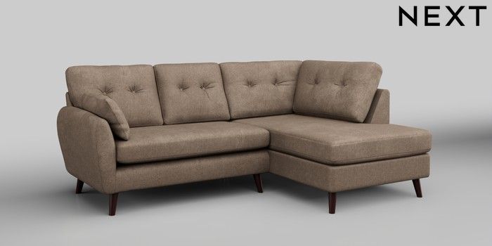 6.12.1 Buy Wilson Buttoned Back Medium Corner Chaise - Right Hand Plush Chenille Mid Natural Retro Tapered - Dark Brown from the Next UK online shop Click here to use our accessible website