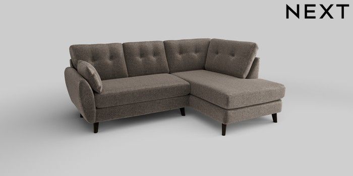 6.12.1 Buy Wilson Buttoned Back Medium Corner Chaise - Right Hand Plush Chenille Mink Brown Retro Tapered - Dark from the Next UK online shop Click here to use our accessible website