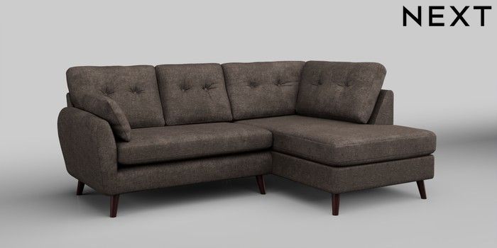 6.12.1 Buy Wilson Buttoned Back Medium Corner Chaise - Right Hand Plush Chenille Mink Brown Retro Tapered - Dark Brown from the Next UK online shop Click here to use our accessible website