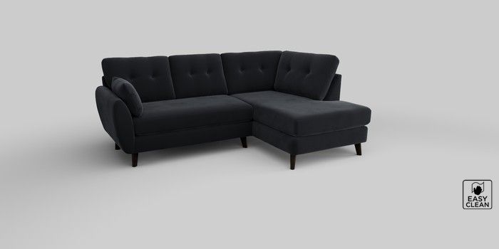 6.12.1 Buy Wilson Buttoned Back Medium Corner Chaise - Right Hand Plush Velvet Easy Clean Charcoal Grey Retro Tapered - Dark from the Next UK online shop Click here to use our accessible website