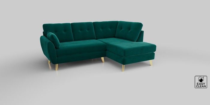6.12.1 Buy Wilson Buttoned Back Medium Corner Chaise - Right Hand Plush Velvet Easy Clean Juniper Green Metal Tapered - Gold from the Next UK online shop Click here to use our accessible website