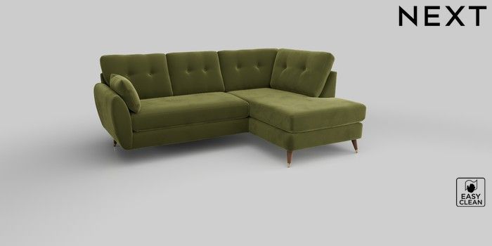6.12.1 Buy Wilson Buttoned Back Medium Corner Chaise - Right Hand Plush Velvet Easy Clean Mid Olive Green Low Retro Tapered Metal Cap - Mid from the Next UK online shop Click here to use our accessible website