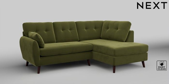 6.12.1 Buy Wilson Buttoned Back Medium Corner Chaise - Right Hand Plush Velvet Easy Clean Mid Olive Green Retro Tapered - Dark Brown from the Next UK online shop Click here to use our accessible website
