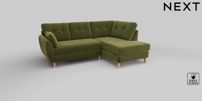 6.12.1 Buy Wilson Buttoned Back Medium Corner Chaise - Right Hand Plush Velvet Easy Clean Mid Olive Green Retro Tapered - Light from the Next UK online shop Click here to use our accessible website