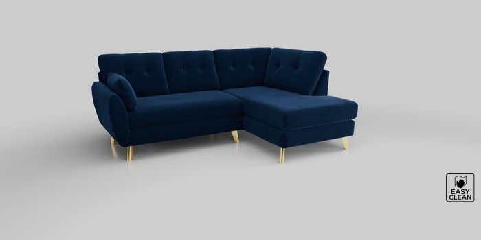 6.12.1 Buy Wilson Buttoned Back Medium Corner Chaise - Right Hand Plush Velvet Easy Clean Navy Blue Metal Tapered - Gold from the Next UK online shop Click here to use our accessible website