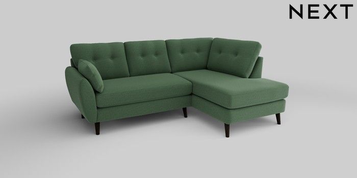 6.12.1 Buy Wilson Buttoned Back Medium Corner Chaise - Right Hand Relaxed Linen Look Dark Green Retro Tapered - Dark from the Next UK online shop Click here to use our accessible website