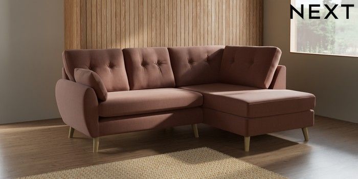 7.2.10 Buy Wilson Buttoned Back Medium Corner Chaise - Right Hand Relaxed Linen Look Light Rust Brown Retro Tapered - Light from the Next UK online shop Click here to use our accessible website