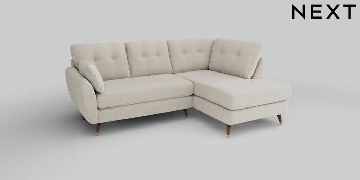 6.12.1 Buy Wilson Buttoned Back Medium Corner Chaise - Right Hand Relaxed Linen Look Oyster Low Retro Tapered Metal Cap - Mid from the Next UK online shop Click here to use our accessible website