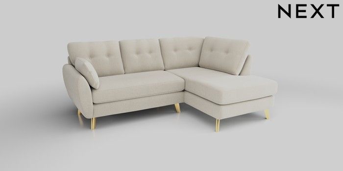 6.12.1 Buy Wilson Buttoned Back Medium Corner Chaise - Right Hand Relaxed Linen Look Oyster Metal Tapered - Gold from the Next UK online shop Click here to use our accessible website