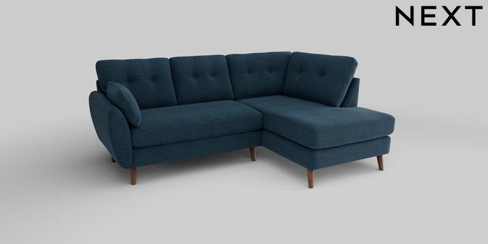6.12.1 Buy Wilson Buttoned Back Medium Corner Chaise - Right Hand Ripple Chenille Dark Blue Retro Tapered - Mid from the Next UK online shop Click here to use our accessible website