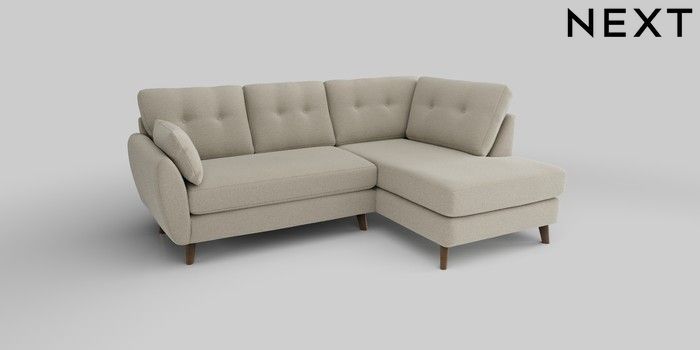 6.12.1 Buy Wilson Buttoned Back Medium Corner Chaise - Right Hand Ripple Chenille Light Natural Retro Tapered - Mid from the Next UK online shop Click here to use our accessible website