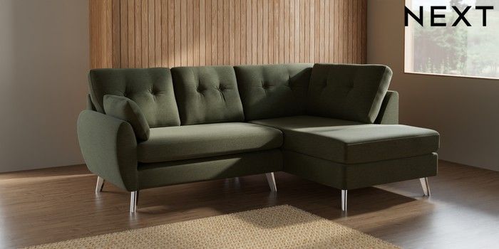 7.2.10 Buy Wilson Buttoned Back Medium Corner Chaise - Right Hand Ripple Chenille Mid Moss Green Metal Tapered - Chrome from the Next UK online shop Click here to use our accessible website