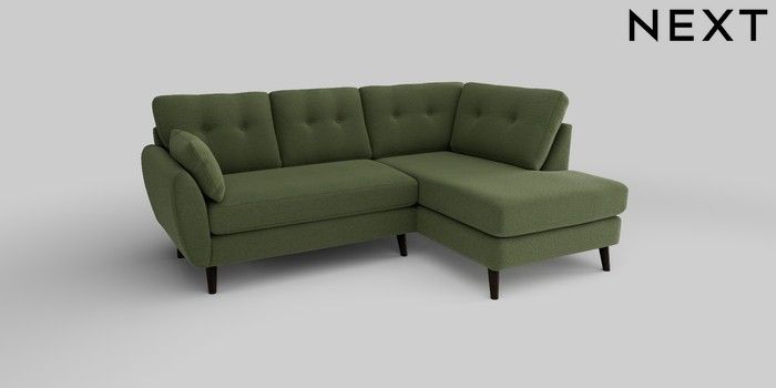 6.12.1 Buy Wilson Buttoned Back Medium Corner Chaise - Right Hand Ripple Chenille Mid Moss Green Retro Tapered - Dark from the Next UK online shop Click here to use our accessible website
