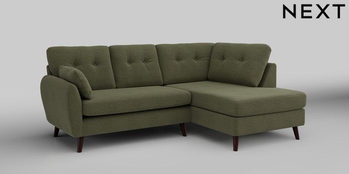 6.12.1 Buy Wilson Buttoned Back Medium Corner Chaise - Right Hand Ripple Chenille Mid Moss Green Retro Tapered - Dark Brown from the Next UK online shop Click here to use our accessible website