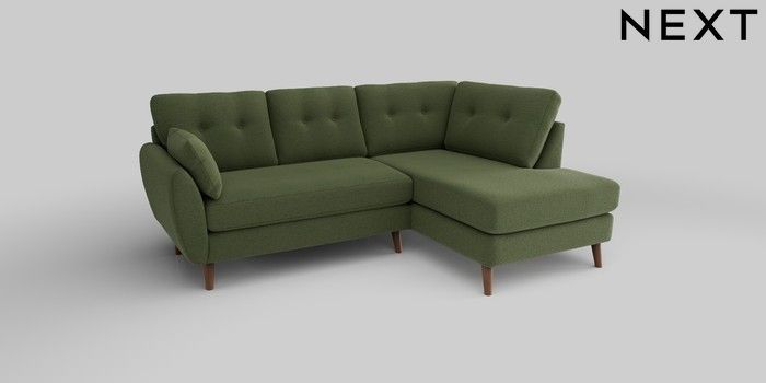 6.12.1 Buy Wilson Buttoned Back Medium Corner Chaise - Right Hand Ripple Chenille Mid Moss Green Retro Tapered - Mid from the Next UK online shop Click here to use our accessible website