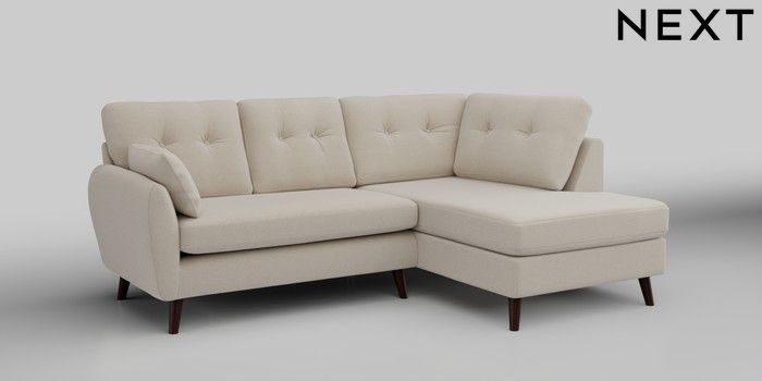 6.12.1 Buy Wilson Buttoned Back Medium Corner Chaise - Right Hand Studio Chenille Oyster Retro Tapered - Dark Brown from the Next UK online shop Click here to use our accessible website