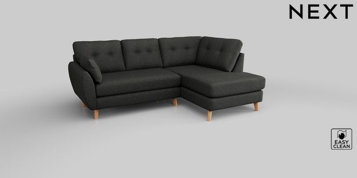 6.12.1 Buy Wilson Buttoned Back Medium Corner Chaise - Right Hand Tweedy Blend Easy Clean Charcoal Grey Retro Tapered - Light from the Next UK online shop Click here to use our accessible website
