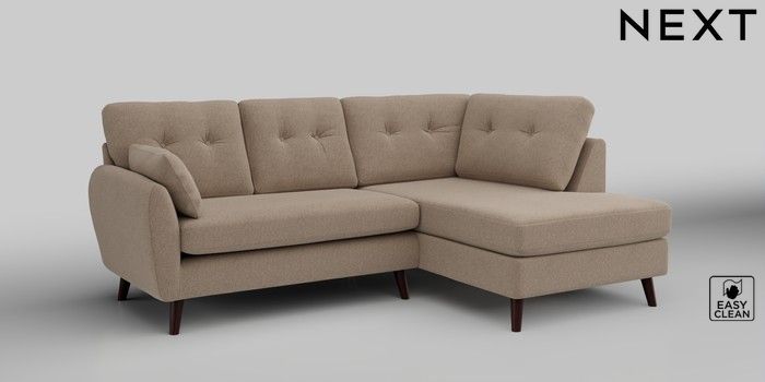6.12.1 Buy Wilson Buttoned Back Medium Corner Chaise - Right Hand Tweedy Blend Easy Clean Light Dove Natural Retro Tapered - Dark Brown from the Next UK online shop Click here to use our accessible website