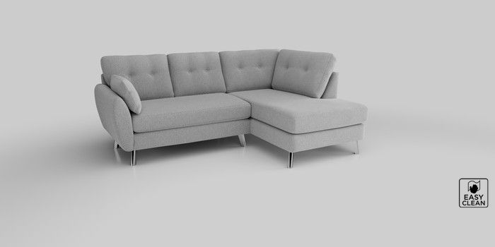 6.12.1 Buy Wilson Buttoned Back Medium Corner Chaise - Right Hand Tweedy Blend Easy Clean Light Silver Grey Metal Tapered - Chrome from the Next UK online shop Click here to use our accessible website