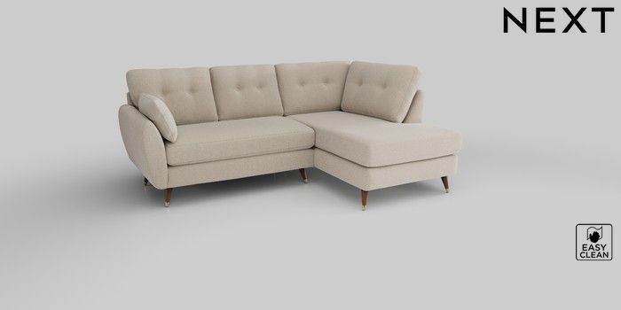 6.12.1 Buy Wilson Buttoned Back Medium Corner Chaise - Right Hand Tweedy Blend Easy Clean Oyster Low Retro Tapered Metal Cap - Mid from the Next UK online shop Click here to use our accessible website
