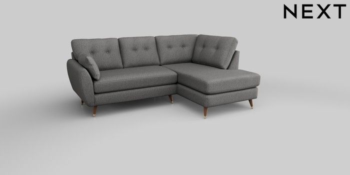 6.12.1 Buy Wilson Buttoned Back Medium Corner Chaise - Right Hand Tweedy Chenille Dark Grey Low Retro Tapered Metal Cap - Mid from the Next UK online shop Click here to use our accessible website