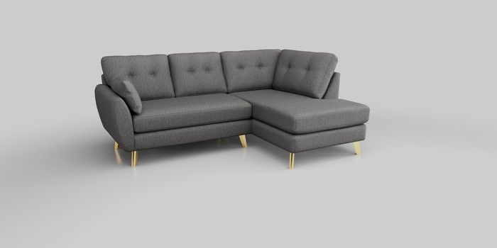 6.12.1 Buy Wilson Buttoned Back Medium Corner Chaise - Right Hand Tweedy Chenille Dark Grey Metal Tapered - Gold from the Next UK online shop Click here to use our accessible website