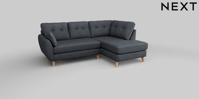6.12.1 Buy Wilson Buttoned Back Medium Corner Chaise - Right Hand Tweedy Chenille Navy Blue Retro Tapered - Light from the Next UK online shop Click here to use our accessible website