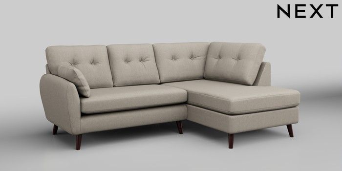 6.12.1 Buy Wilson Buttoned Back Medium Corner Chaise - Right Hand Tweedy Chenille Oyster Retro Tapered - Dark Brown from the Next UK online shop Click here to use our accessible website