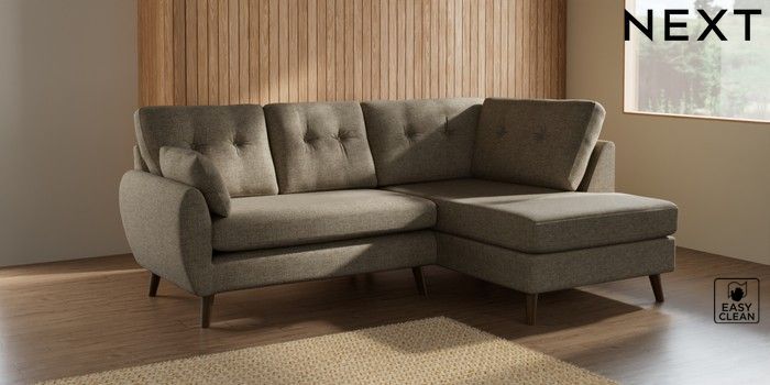 7.2.10 Buy Wilson Buttoned Back Medium Corner Chaise - Right Hand Woven Chenille Easy Clean Mid Natural Retro Tapered - Mid from the Next UK online shop Click here to use our accessible website