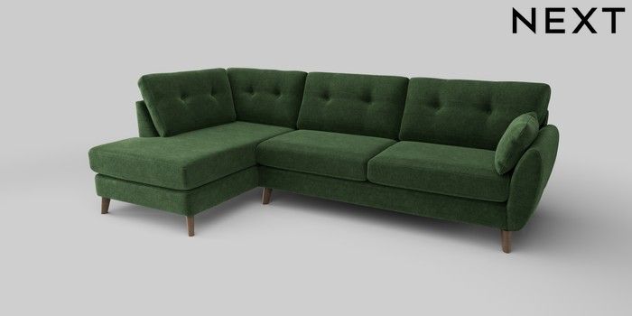 6.12.1 Buy Wilson Buttoned Back Large Corner Chaise - Left Hand Luxe Chenille Dark Green Retro Tapered - Mid from the Next UK online shop Click here to use our accessible website