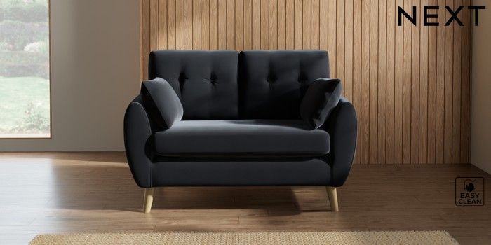 7.2.10 Buy Wilson Buttoned Back 2 Seater Small Sofa Plush Velvet Easy Clean Charcoal Grey Retro Tapered - Light from the Next UK online shop Click here to use our accessible website