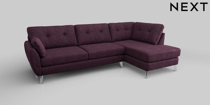 6.12.1 Buy Wilson Buttoned Back Large Corner Chaise - Right Hand Plush Chenille Dark Plum Purple Metal Tapered - Chrome from the Next UK online shop Click here to use our accessible website