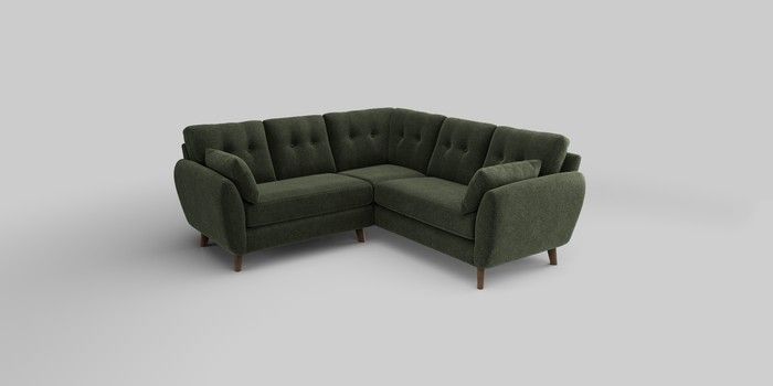 6.12.1 Buy Wilson Buttoned Back Small Corner Sofa - Universal Boucle Chenille Dark Moss Green Retro Tapered - Mid from the Next UK online shop Click here to use our accessible website