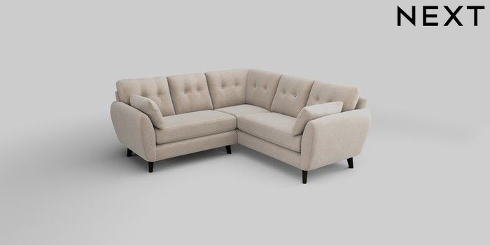 6.12.1 Buy Wilson Buttoned Back Small Corner Sofa - Universal Boucle Chenille Oyster Retro Tapered - Dark from the Next UK online shop Click here to use our accessible website