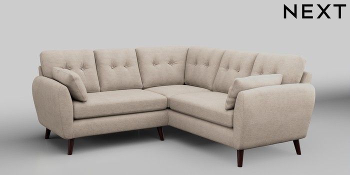 6.12.1 Buy Wilson Buttoned Back Small Corner Sofa - Universal Boucle Chenille Oyster Retro Tapered - Dark Brown from the Next UK online shop Click here to use our accessible website