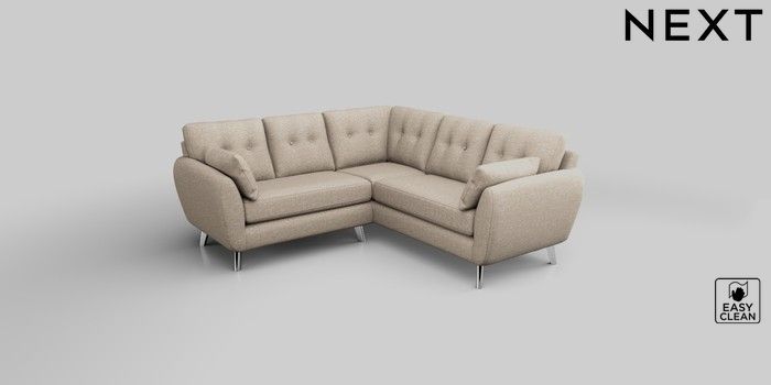 6.12.1 Buy Wilson Buttoned Back Small Corner Sofa - Universal Boucle Weave Easy Clean Dark Natural Metal Tapered - Chrome from the Next UK online shop Click here to use our accessible website
