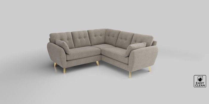 6.12.1 Buy Wilson Buttoned Back Small Corner Sofa - Universal Chunky Boucle Easy Clean Dove Metal Tapered - Gold from the Next UK online shop Click here to use our accessible website