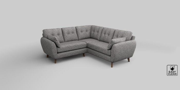 6.12.1 Buy Wilson Buttoned Back Small Corner Sofa - Universal Chunky Boucle Easy Clean Light Grey Retro Tapered - Mid from the Next UK online shop Click here to use our accessible website