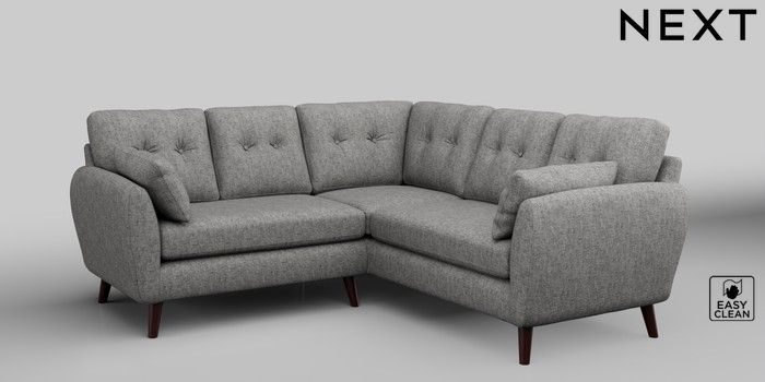 6.12.1 Buy Wilson Buttoned Back Small Corner Sofa - Universal Chunky Boucle Easy Clean Light Grey Retro Tapered - Dark Brown from the Next UK online shop Click here to use our accessible website