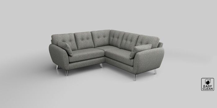 6.12.1 Buy Wilson Buttoned Back Small Corner Sofa - Universal Chunky Boucle Easy Clean Mid Grey Metal Tapered - Chrome from the Next UK online shop Click here to use our accessible website