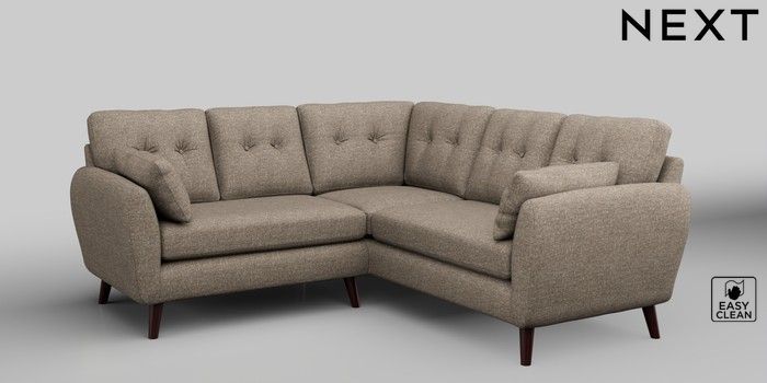 6.12.1 Buy Wilson Buttoned Back Small Corner Sofa - Universal Chunky Boucle Easy Clean Mid Natural Retro Tapered - Dark Brown from the Next UK online shop Click here to use our accessible website