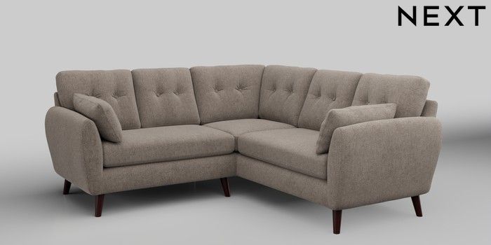 6.12.1 Buy Wilson Buttoned Back Small Corner Sofa - Universal Chunky Chenille Light Dove Retro Tapered - Dark Brown from the Next UK online shop Click here to use our accessible website
