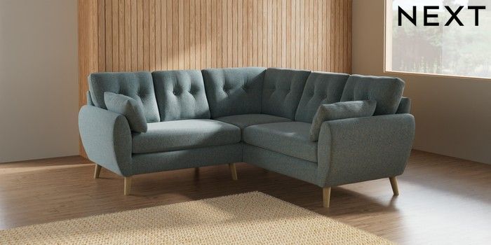 7.2.10 Buy Wilson Buttoned Back Small Corner Sofa - Universal Chunky Marl Mid Blue Retro Tapered - Light from the Next UK online shop Click here to use our accessible website