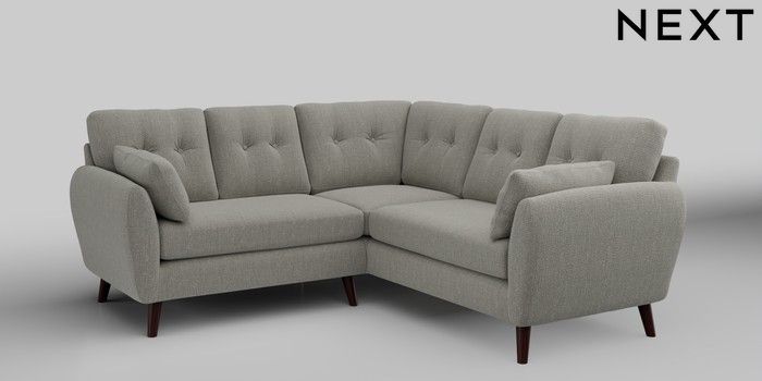 6.12.1 Buy Wilson Buttoned Back Small Corner Sofa - Universal Chunky Texture Dove Retro Tapered - Dark Brown from the Next UK online shop Click here to use our accessible website